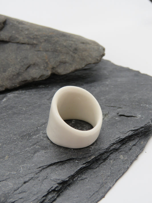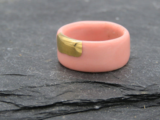 Porcelain rings hand painted with a range of underglazes and decorated with 24 Carat gold or platinum lustre.